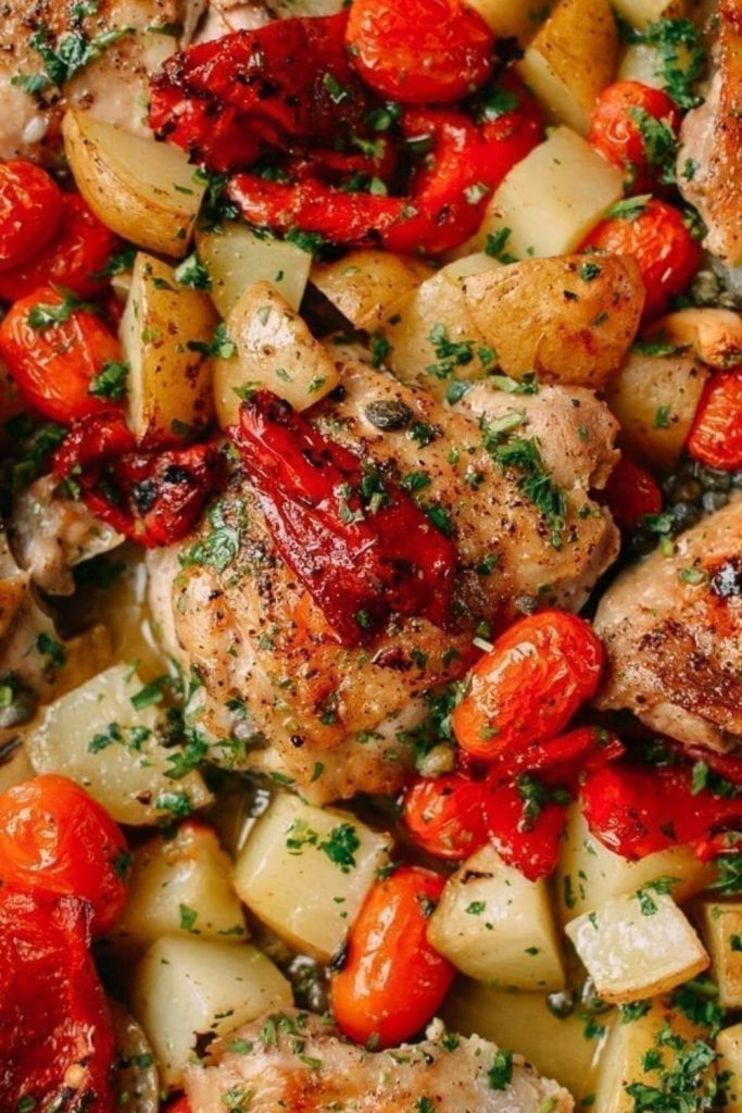 Sheet pan dinners are my secret weapon on hectic weeknights, and this chicken thigh version from Laura Fuentes is one of the absolute best. Everything goes on one pan seasoned chicken thighs, colorful vegetables, a drizzle of olive oil and the oven takes it from there.
