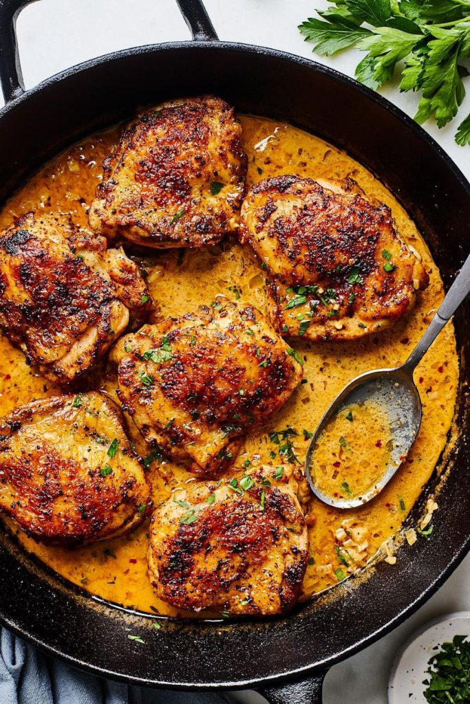 Bone-in thighs tend to have more flavor and stay juicier during longer cooking, while boneless thighs are quicker to cook and easier to eat. Most recipes on this list work well with either just adjust the cooking time slightly for bone-in pieces.