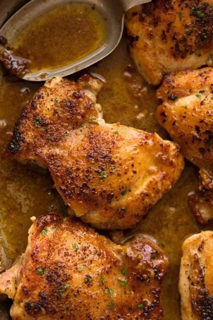Garlic butter on chicken thighs is one of those flavor combinations that just makes complete, undeniable sense rich, fragrant, and deeply satisfying in every way. Tasting Table’s version is beautifully executed, with the butter continuously basted over the chicken as it cooks for maximum flavor.