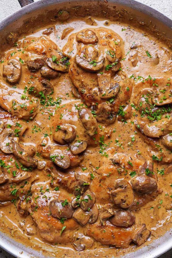 This is the kind of dish that makes people think you spent hours in the kitchen rich, creamy, deeply savory, and absolutely gorgeous on the plate. Café Delites creates a luscious garlic mushroom sauce that wraps around golden chicken thighs like the most satisfying warm hug.