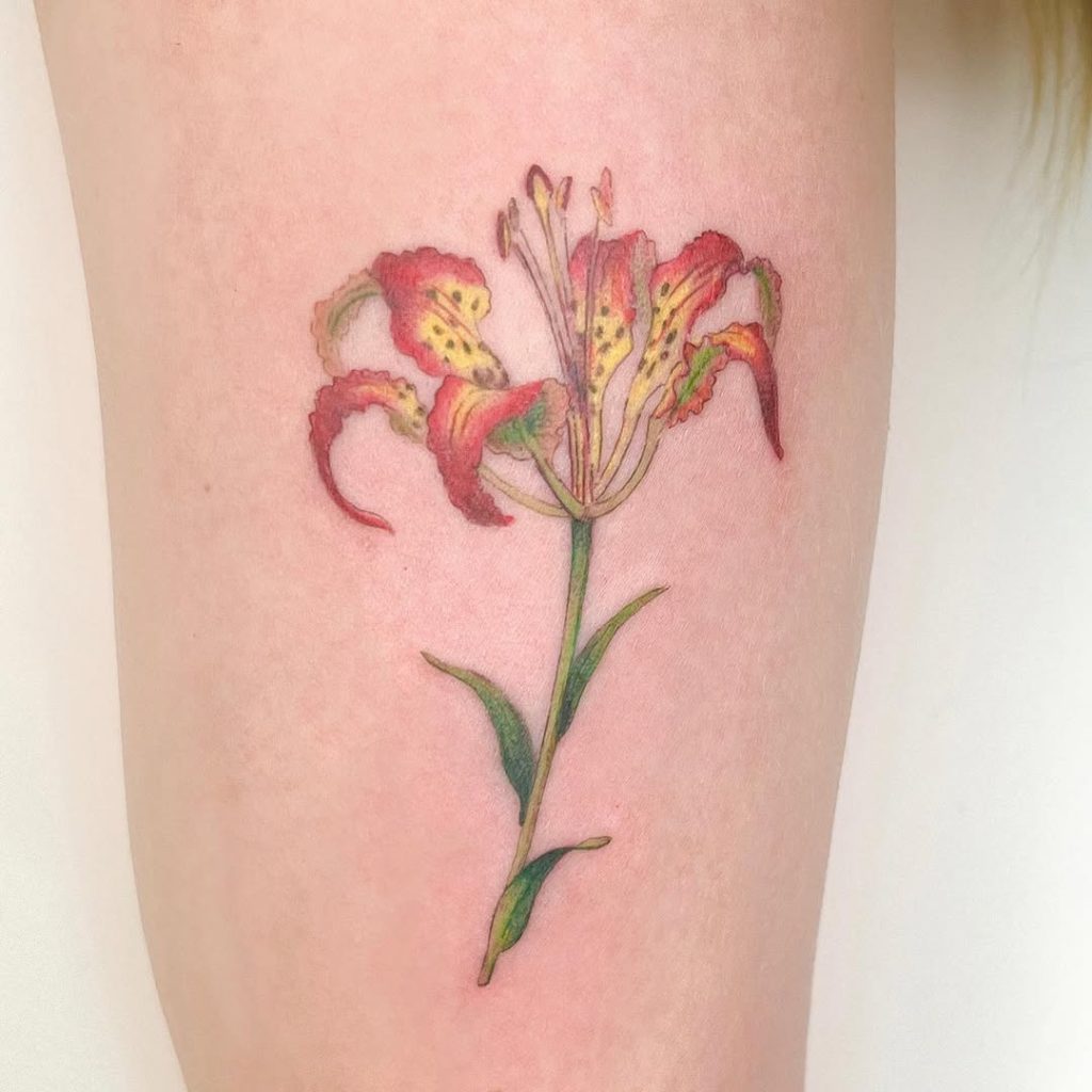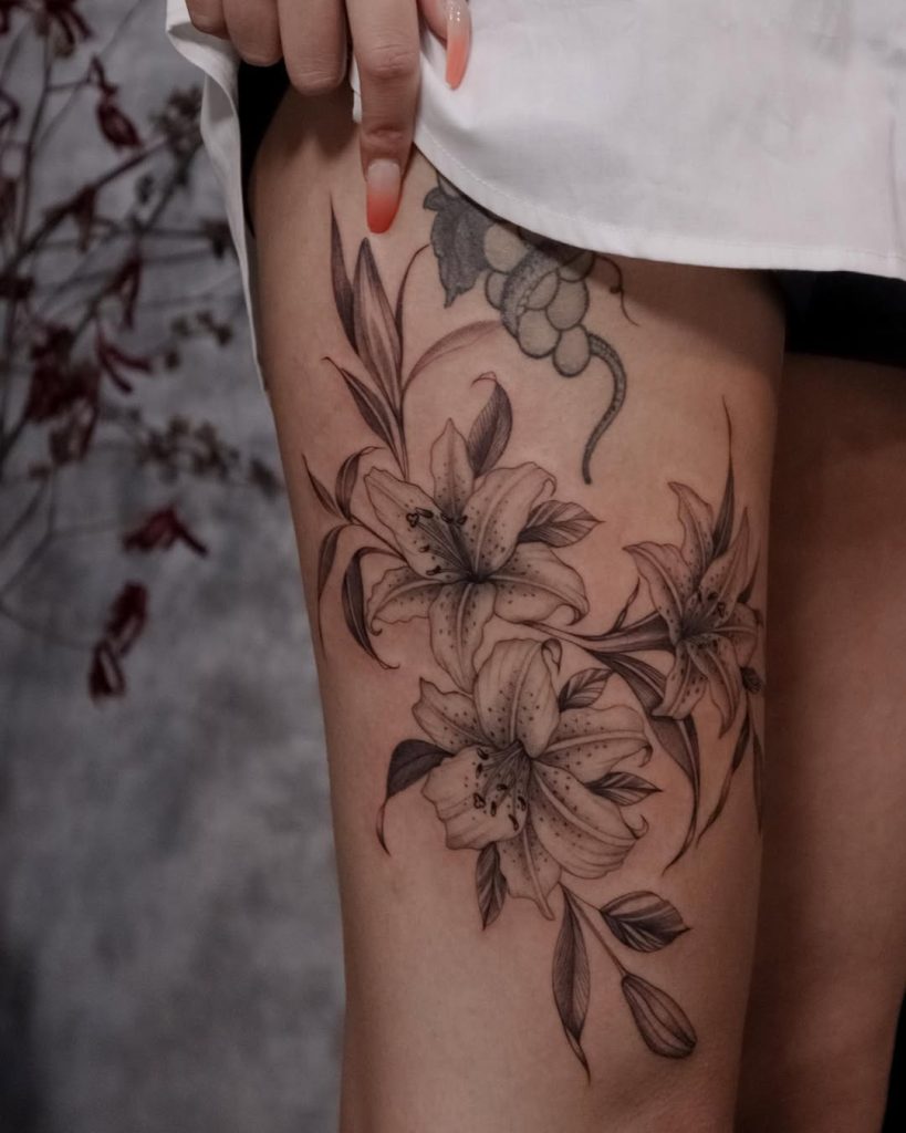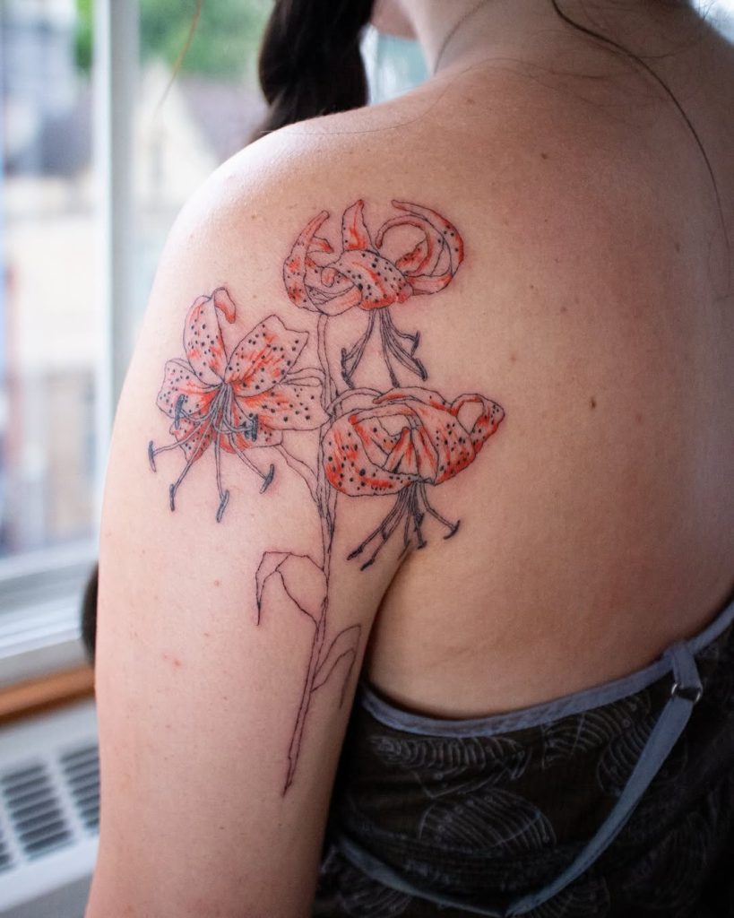 I’ve always loved how tiger lily tattoos balance strength and elegance. They’re not overly delicate, but they’re not harsh either they sit perfectly in that space where beauty meets power. Plus, they often symbolize pride, courage, and prosperity, making them even more meaningful.